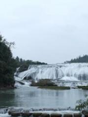 陡坡塘瀑布位于贵州省黄果树瀑布上游1公里处,瀑顶宽105米,高21米,是黄果树瀑布群中瀑顶最宽的瀑布。陡坡塘瀑布顶上是一个面积达1.5万平方的巨大溶潭,瀑布则是形成在逶迤100多米长的钙化滩坝上。陡坡塘瀑布还有一个特殊的现象:每当洪水到来之前,瀑布都要发出"轰隆。轰隆"的吼声,因此又叫"吼瀑"。1983年版西游记片尾曲拍摄地。