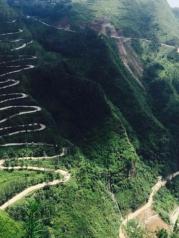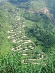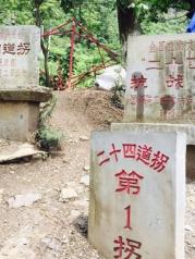 晴隆二十四道拐原名是史迪威公路,是滇缅公路的贵州一段。据说以前晴隆人都不知道这条路是抗战公路,毕竟最轰动的是滇缅公路,顾名思义就是昆明至仰光,跟贵州有半毛关系。最后是个美国人,在云南界内找了半天也没找到,拿着当年的照片比着晴隆的二十四道拐才终于确认它是史迪威将军抢修的抗战公路。 我们是在为拍摄《二十四道拐》电视剧搭建的安南古城的广场上坐观光车到它对面的山上去欣赏蜿蜒曲折的二十四道拐公路美景。现在还有一个待开放的游客中心和纪念馆在修,将来登高远望,二十四道拐的全景会一览无遗。 然后,我们自驾从第二十四拐徐徐地转到第一拐(下山路),给每一个拐的路碑拍照。虽然是石子路,但是路基很好,错车也很轻松。