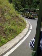晴隆二十四道拐抗战公路,是“史迪威公路”的形象标识。古称“鸦关”,雄、奇、险、峻,有一夫当关,万夫莫开之势。从山脚至山顶的直线距离约350米,垂直高度约260米;在倾角约60度的斜坡上以“S”型顺山势而建,蜿蜒盘旋至关口,全程约4公里。 短驳车是军车的模样,山上围栏也是修成炮弹的模样,很有创意。电瓶车是六十元。游客比较少,晴隆古城也是才建好的,像影视城一样,没什么人。