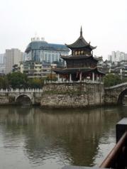 几次去贵阳,与甲秀楼都擦肩而过,这次里里外外看得很仔细,首先贵阳人将这座建于明代的古建筑保护的很好,整栋楼閣建在南明河中的一块矶石上,无论在哪个角度看都极具美观性。楼的两侧由石拱浮桥连接两岸,桥身以白色为栏,有雕塑桥柱,特别漂亮。甲秀楼一共有三层,一楼布有不同的历史展品,二楼是旅游纪念品销售部,三楼有一个画家在那里作画售画。值得仔细欣赏的是那副长联,有详细介绍。其次是该楼免费开放,这要点赞的。