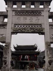 三游青岩古镇书《虎距龙蟠青岩镇》虎距龙蟠青岩镇,升平人瑞七百春。七十二寨为首领,四省驿站千古城。石城围护四条街,八庙九寺冷杉珍。五阁两祠状元府,三座名牌竖青屯。雕梁画柱神工图,石板古街延山伸。文史民俗饮食美,住过伟人老父亲。(注=周恩来的父亲曾在青岩避难。)