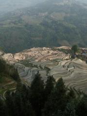 加榜梯田在贵州从江县境内,相对于其他几个著名梯田,这里名气还比较小,处于开发的初期阶段,但气势和规模不逊于那些著名梯田。从882县道与去加榜梯田的乡村道路分岔路口(简易的景区大门)开始,到加车村,8、9公里的路程,随处可见气势磅礴的梯田。加榜梯田核心区域,由下到上依次有党扭、加页、加车三个村,加车最高,观景效果更好。