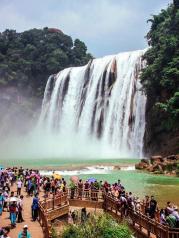 黄果树瀑布好美,好壮观,一直想去,终于看到了,人很多,很热闹,也属于热门旅游目的地,但是进入汛期,前一阵下了很多雨,水很大,也很浑,景区内许多景点都关闭了。当地吃的有点辣,不过还可以,挺好吃的,值得一去。