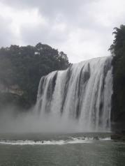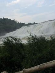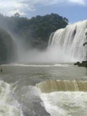 黄果树瀑布既秀丽又壮观,去的时候正好是水量充沛的时候,瀑布奔流而下,声势浩大,水流湍急,越是靠得近,水雾也越大,感觉像下小雨一样,需要打伞或穿雨衣。第一次来的旅客,去瀑布的电梯票不用买(老人与孩子除外),可买回程的电梯票。