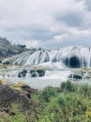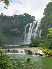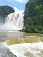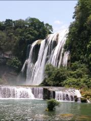 陡坡塘瀑布在黄果树瀑布的上游,从这里走到黄果树大瀑布大概要半小时,这里最大的特色就是那个西游记中取景地那个瀑布,非常的经典。这里没有黄果树大瀑布的高大,却更加气势恢弘,正面宽一百多米,高21米