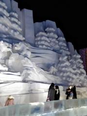 哈尔滨中央大街的冰雪大世界值得一去,从工程量度,技术含量,场地位置和宽广上都值得一去,不过得穿厚点!冰天雪地有点冷!园内有快餐,热饮,有马车,有小火车!
