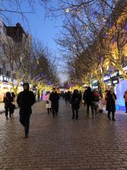 哈尔滨中央大街就是一条步行街有着异国风情的建筑。我们去的时候刚好圣诞节,两旁都挂着圣诞灯装饰,很有气氛,很浪漫。 很出名的马迭尔冰棍 就在这条街上,路过常看到大排长龙的队。
