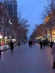 哈尔滨中央大街旧称中国大街,是哈尔滨西洋风情的所在。这条大街的形成,要追溯到1898年。是很有特色的一条街,经过马迭尔冰棍,一直走到底就是松花江了。