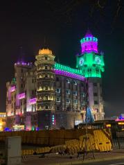 我们到哈尔滨就住在哈尔滨中央大街入口的万达假日酒店,马路对面就是中央大街,非常方便,大街上非常干净整洁,两边商城林立,餐厅也非常多,走到底就是松花江,我们两天走了好多遍,夜晚的灯光还没有完全开,所以还显得有点儿冷清。