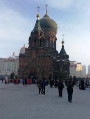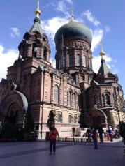 圣索菲亚教堂没到里面去,只在外面看了下。建筑古老,与周围楼房格格不入。遇到有人在这拍结婚照。可能晚上去更好。距离中央大街不远,可以步行过去。如果想到教堂里面,另买门票。