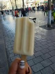 哈尔滨中央大街的,很繁华的步行街,应该说是每个城市都有一条的特色街哈尔滨更不例外,走在中央大街两边特色的街道,遍布两侧的特产特色店,点缀在两边的冰雕提醒着你来到了冰城,中央大街上的马迭尔雪糕更是不能不提,甜儿不腻非常好吃,据说一天卖四万根哦。