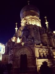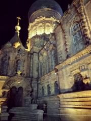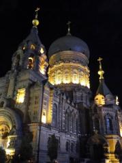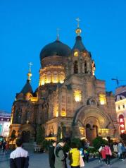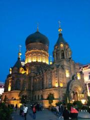 夜晚的索菲亚大教堂很漂亮,典型的欧式风格建筑,真的洋教堂,很有气势,在中央大街的尽头,很好找,又处在小广场的中央,很大气美观,有许多拍婚纱照的都在这里,非常不错,去哈尔滨一定要去看看!