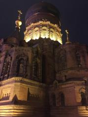 夜幕下的圣索菲亚大教堂尤为诱人,每个角度欣赏都蕴含着浓浓的异国风情,是哈尔滨的地标性建筑,与中央大街相邻,一路走来,有置身于欧洲国家的错觉。