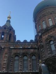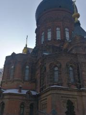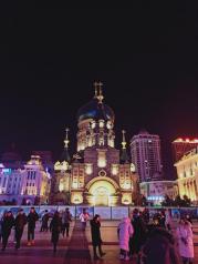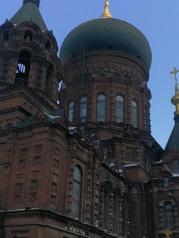 1月14号去的圣索菲亚教堂,因为维修,所以教堂的里边进不去,只能在外边参观。 教堂在外边看不是很大,游人也不少,走过两个街口就能到中央大街了,很方便的。