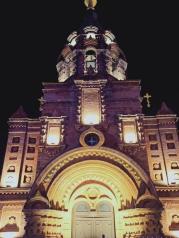 索菲亚教堂位于哈尔滨,富丽堂皇,宏伟壮观。正门顶部为钟楼,教堂建筑平面呈希腊十字方式布置,既受拜占庭建筑风格影响,主穹顶、钟楼又有俄罗斯传统的“帐篷顶”、“洋葱头”造型!