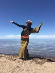 青海湖,一个我十分神往的地方,从网上订了包车,驱车千万青海湖,湖面呈弧形,湖水清澈,女生建议穿红裙或披红披肩,这样拍出照片会很好看