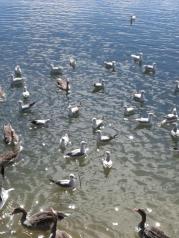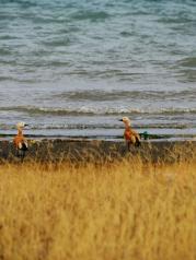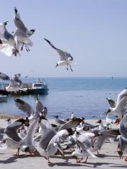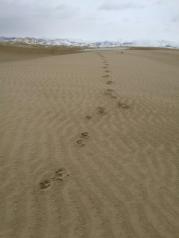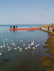青海湖,我的计划是一天,所以参加了一个一日团,玩的景点是金银滩、金沙湾、二郎剑、日月山。此时的青海湖已进入冬季,游客也少了,大部分时间都只有我们一辆旅游车,一路上,见的多的是牦牛和绵羊。 金银滩本是看草原,因为下雪了,所以我看到的是洁白的雪原。到的时候,一片白茫茫;走的时候,留下我们杂乱的脚印。 金沙湾主要是玩沙,有滑沙骑骆驼沙滩摩托车等活动。景色也不错。眼前,是黄色的沙;远处,是白雪皑皑的山。 二郎剑景区是青海湖畔其中一个重要景点,这里有游船和自行车等游乐项目,由于游客少,自行车项目似乎停了,而游船也没见人坐。湖里有一些水鸟,海鸥是不太怕人的,给它们撒点面包,它们就会过来抢食。 青海湖应该是