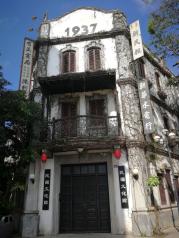 骑楼老街的骑楼楼层都不太高,两三层的居多,有些还保留着早前的商号,和凭栏、门窗等处的精美雕花。只是值得去看看而已,毕竟还是有点建筑特色的,关于那里的美食,说实话可真不是想象中的那样美好。