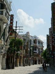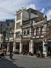 海口骑楼老街是游客必到之处,1920年代兴建的商业建筑和民居建筑混杂,经过修缮的老骑楼和新建的建筑连成一片。新建的建筑像布景,可见新建筑单薄的身形。不过,新老骑楼连成一片气势不一般。