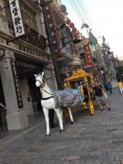 冯小刚电影公社分为1942街和民国街,需要购买门票,如果住公社内酒店,则需要买门票。1942街随处都是时代感的东西,有一种入戏太深的感觉,91栋建筑集合了上世纪三四十年代长江流域4大城市重庆、武汉、南京、上海等地典型的建筑风情。