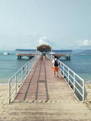 三亚西岛景区风景美丽,海水清澈,大自然给牛王岭美景超级棒。上西岛前买了牯牛岭的套票,上岛先去牯牛岭,排队等中巴,又等了好久,回来还比较顺利。特别适合准新人婚纱照,岛上有山盟海誓索桥,上面的红丝绸缎带迎风飘扬,非常吸引眼球。