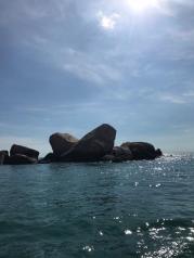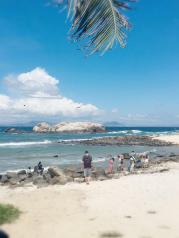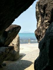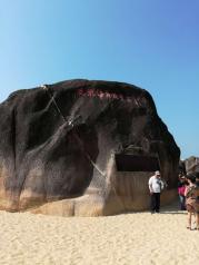 天涯海角游览区,位于海南省三亚市天涯区,距离市区较远。与想象中不同,天涯石、海角石,日月石在海上,和“南天一柱”则在沙滩上。想要观赏“天涯海角”要另外付费坐快艇到海上。建议带雨具雨衣,我们游玩的时候就下雨了,而后不久便天晴了。