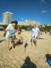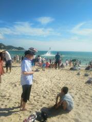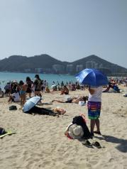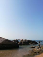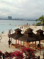 大东海位于市中心,这里“水暖沙白滩平”,早已使三亚大东海蜚声海内外,成为人们冬泳避寒胜地和度假休閒者进行潜海观光、海水浴、日光浴的理想之地。乘公交到夏日百货站下来就是大东海广场,游客真的暴多,很是热闹。