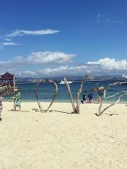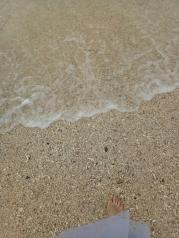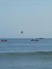 蜈支洲岛上有很多项目可以尝试,只不过价格就不能一一体验了,不算旺季还是要排一个小时左右的队,沙滩很清很美,还有海水浴场,不过沙滩是一块沙滩一块贝壳的,有点硌脚。