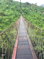 亚龙湾热带天堂森林公园的山路非常陡,坐车既惊险也刺激,公园还有个特色就是上山的车子跟下山的车子相会时会大喊一声相互的打招呼,而且这里空气非常好,来到这里就感觉自己进入了一个天然的大氧吧,很舒服也给自己的肺洗了个澡,第一站,我们坐车到了兰花谷崎岖的小路兰花们各挣奇艳,竞相开放。逛完第一站又坐车来到了第二站非诚勿扰2的主景拍摄地过江龙索桥,看着坐落于对面山头上最具有当地特色的鸟巢度假村看着就让人有种马上就想拎包入住的感觉。