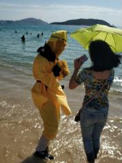 第一次带孩子来三亚湾度假区,个人觉得很不错,吃的不用说,便宜又好吃,就从风景环境来看,海滩还是不错的,有一点要提醒,别以为晴天去海边就舒服,建议多云天气出行,因为太晒了,多云天气最舒服,也更享受~
