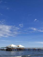 经过大东海大菠萝附近时,在滴滴味小吃城吃了东西,抱罗粉还不错,清补凉也宜人,是很美的赏海地。相比高档商业化的亚龙湾和清静低调的三亚湾,大东海是最亲民最热闹、最高性价比的海滩游览地。