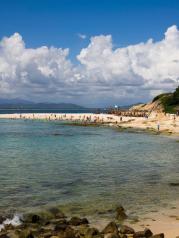 三亚湾离市区近,如果要去南山寺,天涯海角,第一市场,还是住在三亚湾方便一点,房价也相对便宜很多。三亚湾的沙滩比不上亚龙湾,沙粒比较粗,水质也相对差一点, 但风景也是不错滴。