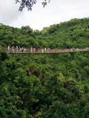 亚龙湾天堂热带森林公园,是个非常美丽的地方。玻璃栈道并不是常见的直道,而是依山而上或下的弧形或者圆形,七彩天阶、圆形观景平台、山盟海誓拱门,是人文与自然完美结合,照片可以拍的特别漂亮!下山可以乘滑索,美则美已,略坑的是滑索分为两到三段,中间的山路却要自己走,如果有体力,不失为一种乐趣,没体力的要慎重。舒淇走的过江龙索桥,即使排队,也值得体验,人少的话,可以拍出美美的照片,总之,是个值得一去的景点!