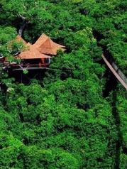 亚龙湾热带天堂森林公园位于我国最南端的三亚市东南方向25公里处,即亚龙湾国家旅游度假区两侧山体,总面积1506公顷,分东园和西园,公园内可开展登山探险、野外拓展、休闲观光、养生度假、科普教育、民俗文化体验等多种旅游活动。景区很大,人文的东西非常多。一般游客都要去过江龙索桥和玻璃栈桥体验一下胆量。另外虎雕广场,大佛石,沧海楼也是游客经常光顾的景点。这里热带雨林景观也是必看的,鸟巢度假村把雨林装扮的恰当好处。