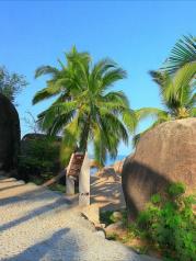 分界洲岛的景色还不错,就是收费略贵。我们沿着大路往远处走一走人会更少,有一处建了白色的罗马式建筑,映衬着蓝天白云和椰影婆娑,坐在凳子上看着远方发呆,放空下自己,也是十分惬意的度假享受。
