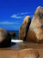 天涯海角位于三亚湾西端,这片海滩上耸立着许多形态各异的岩石,清雍正年间,当地官员程哲于命人在此镌刻了“天涯”二字,后又有文人在另一块巨石上题刻“海角”二字,便有了“天涯海角”这景点,对很多人来说,这里成为了爱情的象征,寓意再遥远的地方我都会陪伴着你,到天涯、到海角……