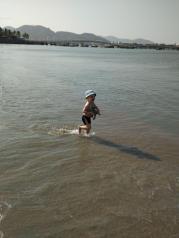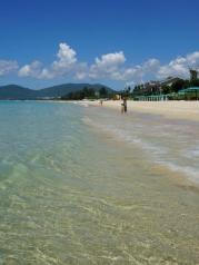 西岛景区的风景挺好的,算是国内最干净的海滩,还是很值得去,可以到没有保安的区域逮小螃蟹,游乐项目偏贵,电瓶车上禁拍照,禁下车,车程约6分钟直达金牛岭。通往金牛岭的浅滩景色佳,但同样不准游客踏入,无法在该处留影。