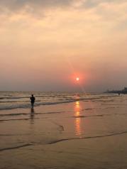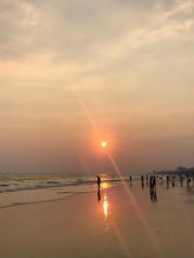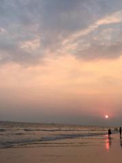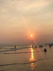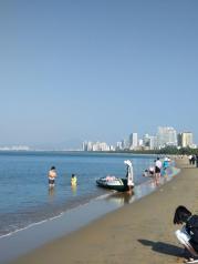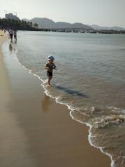 很美的落日,三亚湾度假区果然名不虚传。从4点多开始沿着海边散步,一直到5点太阳慢慢下落,一直到消逝,十月份天气渐凉,海风较大。比较了海棠湾,这边果然更好看,人也比较多,还有一些海边项目。比如摩托艇,海边降落伞等。