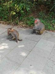 来南湾猴岛有猴子马戏表演,前后会穿插卖字画。工作人员一再叮嘱不要拉开背包,不要吃东西,到处都是虎视眈眈的猴子,一旦有东西吃,直接窜下来抢走,我都不敢给孩子喝水了,看表演时候有只猴子抢走了一位观众的袋子,还有一只猴子在和观众抢包时候抓伤的人家的胳膊,呲牙咧嘴的,挺吓人的!如果性格温和一些还是很可爱的~