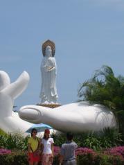 南山海上观音景区很大,要坐电瓶车,因为是住亚龙湾的酒店赠送的门票所以才去的,坐公交过去差不多1个半小时才到,进门之后前段是园林风景,终点是海上观音像,要近距离接触抱佛脚要另付香火钱。