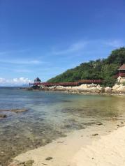 毕竟分界洲岛是5A的岛,景色还是很美的!设施也特别齐全,上去就是餐厅,一望无际的大海,自助的,因为住岛上,还有代金券,看在环境的面上,也值,晚上有扇贝和牛排,鱼排!往下走就是海滨浴场,海水美的叫一个赞,晚上还有半潜艇,看海底珊瑚。