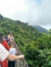 亚龙湾热带天堂森林公园开放了海南唯一的全海景玻璃栈桥,玻璃桥最髙处海拔为450米玻璃全透明站在桥上往脚下看百深的雨林山谷,简直让人感到害怕!外上如海天一色的景色,还能看到亚龙湾碧海蓝天和群山环绕的极致美景,真的非常值得一览的好胜地。