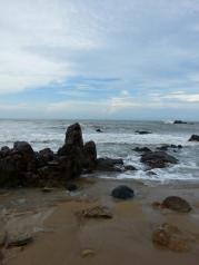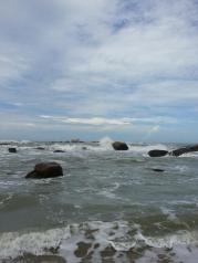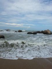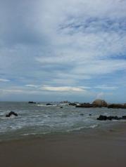 天涯海角真的是美的无法用语言表达,天蓝云白海天一色,分不清哪是天海界线,沙滩海浪,海浪拍打着沙滩,一遍又一遍的洗礼,远处南海观音高高站立,微笑看着众生,人融在这里除了快乐就是流连忘返,爱上了这里。