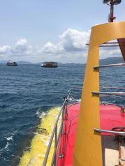 分界洲岛的海水清澈可见度达5~10米,岸上观看可将海水的颜色分为3层分别为碧蓝、碧绿、深蓝,因此这还是潜水的好去处。 分界洲岛潜水,第一次深潜,稍微适应了一下就习惯了,拿手机下水拍了一些照片,好一点的手机防水袋基本上都没问题,潜入水下近距离感受海洋巨兽的压迫感,最大的鱼,鲸鲨,游过来的时候真的很有压力 虽说鲸鲨不吃人,这么大一东西朝你游过来还是有点吓人。