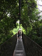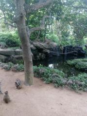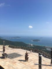 亚龙湾热带天堂森林公园的景色很漂亮,第二站的索道桥要另外收费,但是个人觉得还是挺稳当,儿子走得也相当happy。然后来到了攻略上说的兰花谷,主要是为了来让儿子骑骑鸵鸟,喂喂孔雀和鸽子,动物们都不怕人,还会往你身上飞,其中还有两只鸽子在我胳膊上为抢食打架。建议大家到了电瓶车的终点后,先去大佛石,然后再去沧海楼,这样顺路。上面风景不错,还可以看见海军潜艇基地。