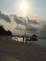 第一站就到天涯海角,很多岩石,刚下好阵雨,天上云很多,但是立马又开太阳了,没有觉得浪费时间,浪拍打在巨石上,气势磅礴,很震撼,就是沙子真的很粗,很割脚!出门口有很多卖特产,零食的,也不贵,椰子12块一个,很甜!