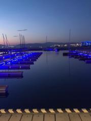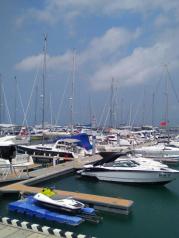 半山半岛帆船出海是特别棒的地方,这里的景色很美,傍晚的时候可以欣赏傍晚余晖和夜晚的灯光都尽收眼底,各式各样的私人游艇停泊在港口里,话不多说,直接上图,旁边就是半山半岛帆船酒店的客房和一个游泳池,很多人在里面嬉戏。