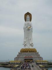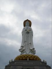 南山海上观音四面环海,据说这个海上观音比自由女神还要高15米,所以海上观音是世界上最大的石像了。观音像分为三面,圣像一面是手拿莲花,另一面是手拿金书,还有一面是手拿佛珠,代表着福禄寿的人间三福。整个的“观音净苑”景区面积近30万平方米,至少需要3个小时左右。