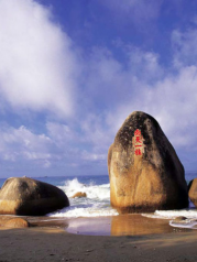 天涯海角以摩崖石刻闻名,“天涯”和“海角”又寓意爱情长长久久,适合情侣和全家人一起来游玩。沙子伴有好多碎石,硌脚,近滩也有很多露出海面的岩石,可以在上面拍照,但一定要注意安全。