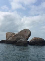 吃完午餐去的天涯海角,事实上天涯也就是几块石头而已,不过寓意不错 我喜欢三亚,喜欢三亚的碧海蓝天,喜欢三亚的白云朵朵,喜欢三亚的热情,喜欢三亚的本地人貌似比我黑多了,哈哈 到达天涯海角海边了,由于是阴天,所以不是白云朵朵,不过也很美 向海里出发吧!好兴奋的说,海面风浪不是很大,依旧有点颠簸,不过超级爽,很能愉悦心情,让人忍不住大叫,像大海打招呼吧!